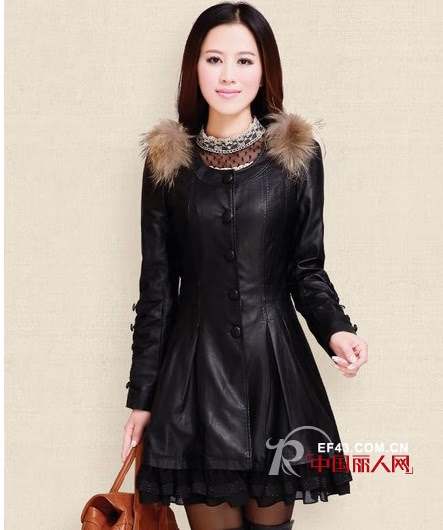 蕾丝花边与PU皮革拼接是设计师顺利完成的嫁接手术,将硬朗与女人味巧妙结合。立体褶皱衣摆利于腰腹赘肉以及臀型的修饰,辛辣、甜美,还具有御姐雷厉风行的大气场。