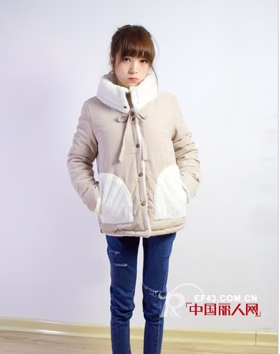 拼接米色系棉衣外套,休闲大方的款式,毛绒围脖领子,穿在身上暖和吸晴,可以抵挡寒风。宽松有致的版型简约时髦。搭配牛仔裤和帅气短靴,魅力有型。
