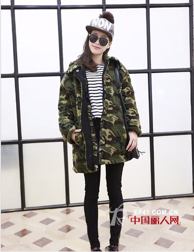 迷彩图案棉衣外套,这款美衣可以两面穿,很实用个性的设计,军绿色迷彩,凸显帅气个性一面。宽松大方的版型,百搭时髦。内搭横条纹打底衫,下穿黑色紧身裤和酒红色短靴,潮范儿十足。