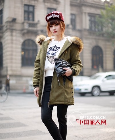 军绿色棉衣外套,军装风格自从流行开来,就一直深受女生们的喜欢,到了冬天,各种军绿色外套大行其道,穿在身上帅气十足。夸张的毛绒领子,温暖厚实。内搭短款套头毛衫,下穿黑色紧身裤和酒红色短靴,戴上休闲帽子,潮范儿十足。