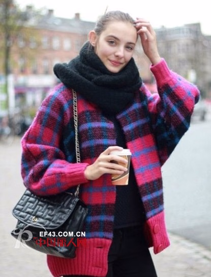 围巾松松地在脖子上围一圈,两头自然垂下,会柔和肩部线条,而且会让上半身显得更苗条。