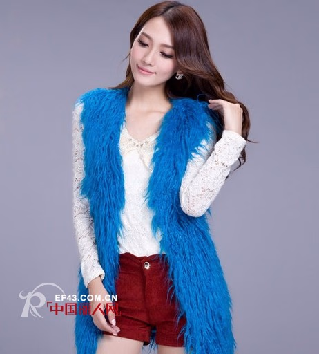 天蓝色虽然深沉,但总被认为是青春靓丽的代名词,个性飞扬,一份沉稳妥当,很适合和华贵这样的词联系到一起。新时代的姑娘们喜欢追求内心的想法,天蓝色皮草马甲,要得就是这份华贵中的青春靓丽。