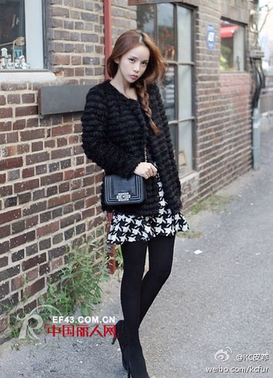 黑色的皮草外套很适合秋冬穿搭,高贵的颜色,短款的外套搭配上高跟鞋,让MM们轻松穿出高挑九头身来呢,黑色的打底衫搭配上千鸟格印花的高腰短裙,让MM们很显优雅淑女呢!