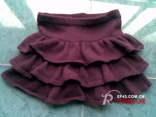 把第三层放在刚才织好的第二层外面,两层合成一层,往上一直织上针,织9cm,然后织上针13行,织一行下针,再织13行上针,然后把上面折过来,在裙子表面缝合,穿入松紧带,就OK了。