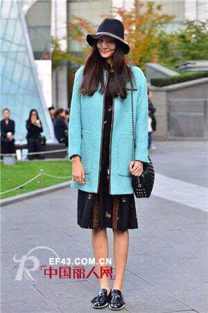 清新的水蓝色呢子大衣出现在街头,已经秒杀了其他的暗色系。简约的款式,优良的质地,宽松的版型很有欧美风。里面搭配以黑色为主打色的碎花裙,很是洋气。手提小包,踩双高跟鞋彰显出无限的气质与魅力。