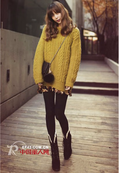 麻花图案的大毛衣款式,黄色毛衣搭配什么颜色好看呢?黄色毛衣搭配小碎花短裙,中长款的毛衣露出一点碎花短裙边,很赞哦,女生减龄必备装扮,黑色裤袜,低帮马丁靴时尚俏皮不二款哦。
