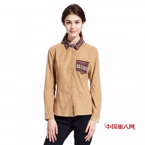 针织领和针织口袋的拼接告别了驼色的单调,为衣服增色不少。非常衬肤的颜色,美邦的灯芯绒衬衫就是能带给人们不一样的合身效果。外面同样可以搭上各种的外套,整体简约个性,阳光帅气。