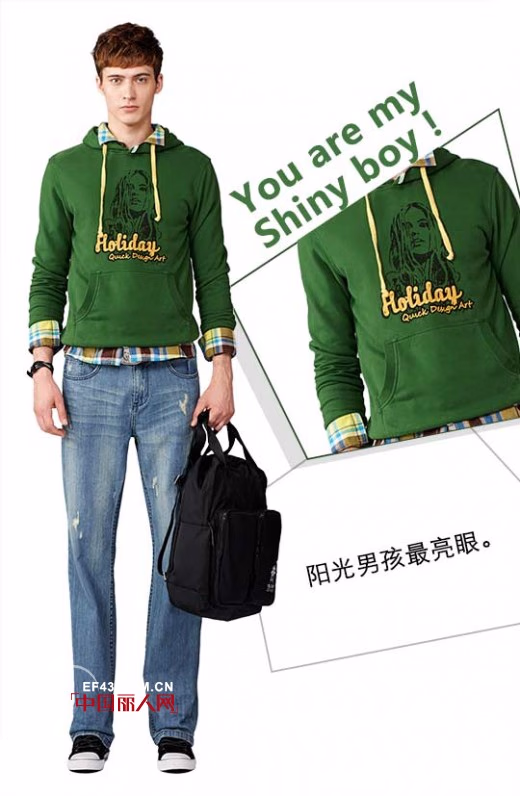 阳光男孩最亮眼。灿烂的笑容配上阳光的衣着,具有青春气息的内衬衫,外面套上了生机勃勃的绿,只要再穿一条随意的牛仔裤,就有闪亮阳光从身体内直接迸射出来,不要太耀眼哟!