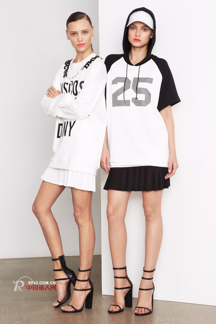 即将在明年迈入25岁的 DKNY 已经为2014预秋季系列抢先亮相,持续以众所皆知的时髦运动风格美感带领风潮。也因为明年服饰趋势刚好是以90年代运动服为走向,以年轻休闲服饰为主的 DKNY 早已经站在时尚的最前端!酷炫黑白色系列的运动裤、溜冰裙、短外套、宽松 T-Shirt、连身背心,几乎都是以运动服装面料作为设计的出发点,轻便而活泼。
