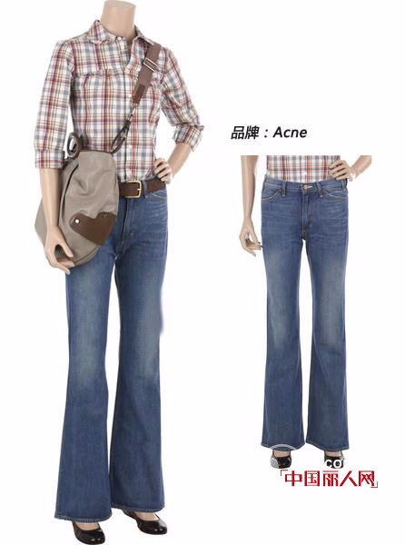 女性的小微喇还很流行猫王的男装喇叭裤已经OUT了,但女性的小微喇还很流行。喇叭裤能使腿形看上去很修长,穿上高跟鞋,有拉伸效果。牛仔裤在时尚界的地位跟老Karl一样,是皇帝级的,其强悍度足可以充斥每个人的衣橱,并且从男到女,从老到少,但你未必知道究竟自己适合怎样的裤型。所以,本期时装编辑为你展示最能凸显长腿的喇叭裤搭配,教你选一条真正与自己“登对”的牛仔裤。