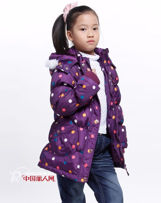 这件波点儿童羽绒服以紫色为主色调,质地柔软。像这种轻飘飘软绵绵暖融融又靓丽的的羽绒服成了聪明妈妈的首选。里面搭件保暖衬衫下面就穿上牛仔裤就好咯。