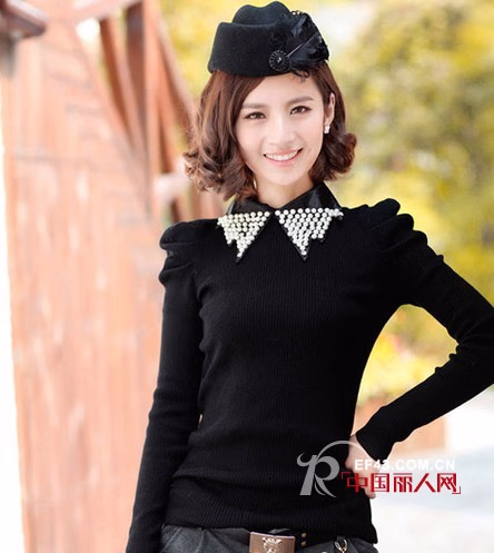 带着复古感的针织衫,被甜美的元素修饰得柔美而有力度,翻领带珍珠的设计,赋予了整个款式极度的唯美感。