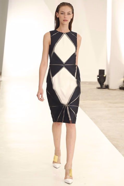 2014春季诞生在一片轻盈、透明的薄纱面料之上,花朵刺绣是如何别致精美,羽毛花朵装饰是如何梦幻甜美,印花蕾丝以及流苏的缠绕是如何性感诱人,都在本季秀场上可见。Tom Ford 2014春夏秀场上的黑色拼贴礼服,紧密贴身的设计加上拼贴的缠绕装饰,更耐人可见的是模特走动时在黑色薄纱里的迷人双腿,是多么的诱惑人心。而Yigal Azrouel以及Pedro Lourenco则以打孔设计的黑白拼接亮相秀场,模特真空上阵的勇气以及女性特有的S曲线,让全场无不叹赏。而Calvin Klein以及Krizia利用透明极强的薄纱以及极具质感的绸缎,让凌厉有致的线条裁剪融入了柔美性感的感觉,干练的造型里散发着唯美浪漫的情怀。更耐人寻味的是Helmut Lang似乎把睡衣搬上了舞台,玫红色的基调,性感的吊带设计,惊艳在一瞬间。