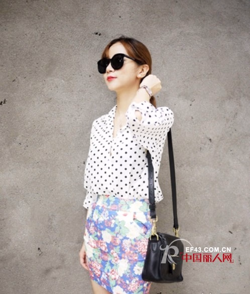 波点的雪纺衬衣可是很多MM们都很喜爱的衬衫款式呢,俏丽的波点印花减龄又很有复古风格呢,搭配上印花的包臀裙很有风格。