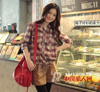 深红和浅棕组合而成的格子衬衣很有中性的味道,搭配同色系的棕色短裤是款不错的休闲装,如果搭配紧身裤长短靴就会变成一款魅力十足的约会和上班装哦。