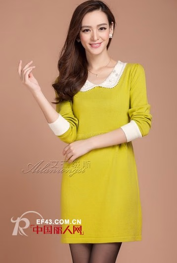 纯色针织连衣裙烫钻俏丽小收腰,一切都是小家碧玉似的温婉格调,除了黄色的明艳抢眼,与撞色珠花娃娃领的清新飞扬,再没有更多置顶时尚的出挑元素,但这或许正是邻家女孩暖眼暖心的致命清纯所在。