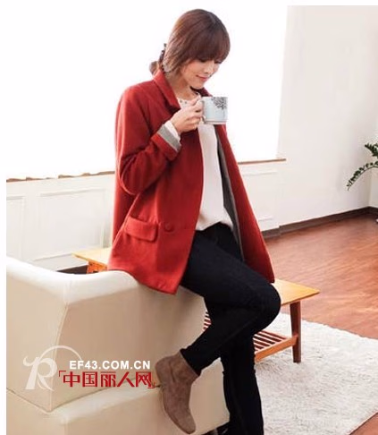小编推荐这身搭配上班约会穿都可以,红色休闲感西装外套内搭白色打底衫,下穿黑色小脚裤和绒面短靴,韩范儿十足的风格,清新优雅。