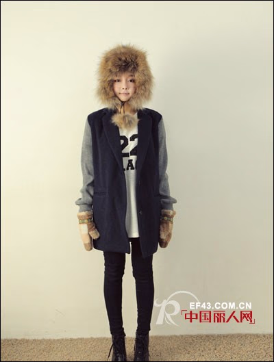 西装款式的棉服很时髦呢,拼接款式的棉服很显时髦呢,西装的版型还能让MM们穿出知性感来呢,白色的字母针织衫内搭,黑色的铅笔裤搭配上马丁靴,时髦大方,在加上毛绒绒的帽子,很俏皮呢!