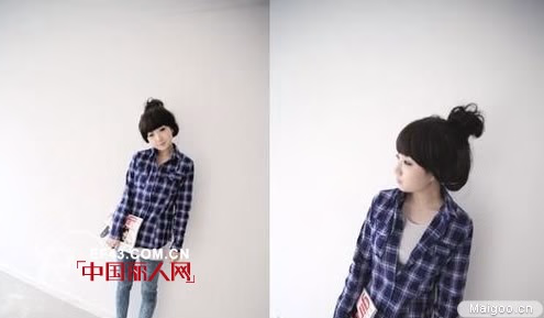 2、格子衬衫也是很多韩国女生首选的服装搭配形式之一。一件白蓝色的格子衬衫,在里头也可以搭配一些简单的无图案白色t恤加上一条水洗的牛仔裤。衬衫可以选择不系扣子的穿法,让其在可爱中透出一丝随性,会更加迷人。