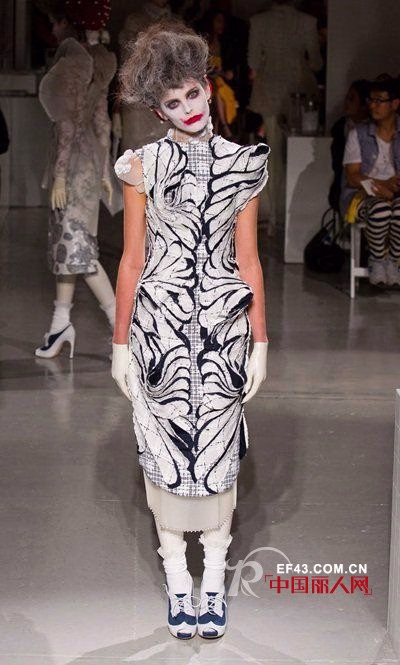惊艳纽约的 Thom Browne 女装,以维多利亚时期的古典服装融合怪诞美学,让人联想到如小丑、红心皇后、鬼娃新娘等角色,再适合万圣节不过了。