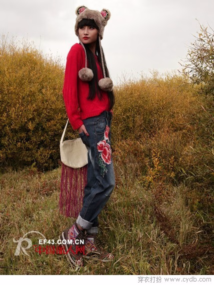 03 不同动物造型的帽子都能够用在万圣节的变装秀上,毛衣+牛仔裤的休闲造型便有了节日氛围。帽子厚实的半圆耳朵上民族风的绣花与牛仔裤上别致的绣花遥相呼应,配合融洽不显突兀。