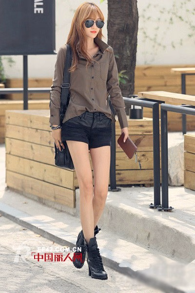 褐色衬衫搭配黑色渐变牛仔裤,帅气十足。黑色短裤和墨镜更是增添几分神秘感。这身搭配,给人的感觉十分有范儿,高挑显瘦,性感又有气场,想必没有女孩子能够抵抗这份时尚的感觉吧。