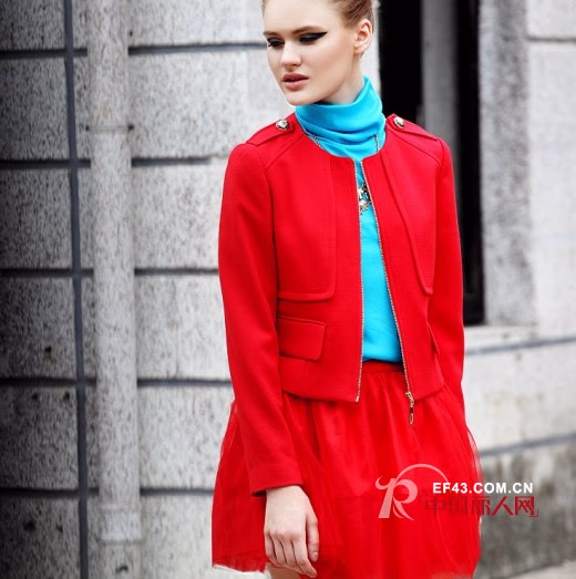 周一基本上是每个公司开会的时间,所以不能太休闲了,红色的小外套,给星期一带来一股活力色彩,蓝色内搭在沉闷的会议室里多了一道愉悦,与上衣同色系的蕾丝裙突显淑女的浪漫,金属项链和外套纽扣的点缀都是亮点,职场时尚味立现。