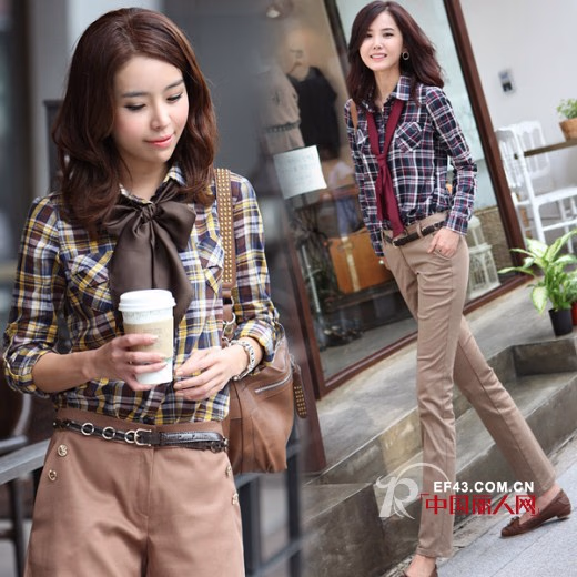 用丝巾打个结或者直接打成蝴蝶结,格子衫百搭学院风,甜美又不失动感。
