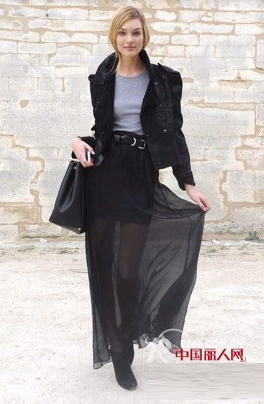 雪纺、薄纱之类的长裙是近年来的大热,今年更是强调了若隐若现的透视感设计,春夏季节如果掌控好比例上的轻重度就已经掌握了懒人搭配显瘦法则的关键!如果配以清爽恬淡的色彩就更能加分!