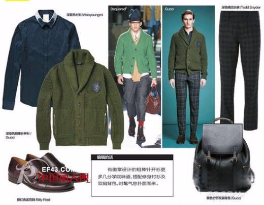 粗棒针开衫在本季依然是时尚界的宠儿,尤其是搭配流线条的青果领,更多了几分优雅气质。粗棒针开衫绝对是微凉天气的百搭之王,内搭长袖T恤、衬衫或者高领针织衫都非常有型,下身搭配一条格纹裤更显摩登。