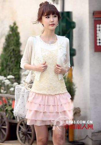 浪漫的花朵蕾丝上衣加上纯白小开衫,下身层叠的粉色蛋糕裙,蕾丝、花朵、雪纺这些充满浪漫柔情的元素组合在一起势必让你变得超甜美起来!