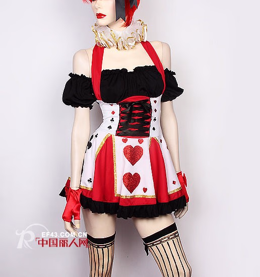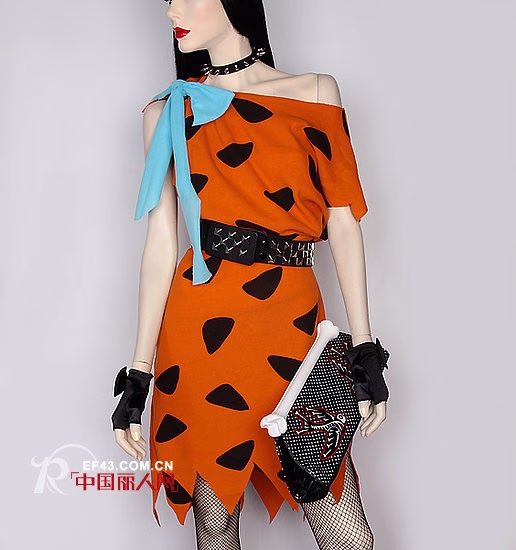 橙色南瓜装斜肩不规则连衣裙已经是够吸引眼球的,再看看搭配的佩饰,宽腰带,项链,手套,渔网袜,恐怖图案手包,这身行头去参加万圣节,你绝对是Party Queen。
