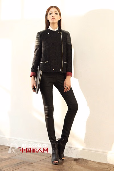 黑色西装搭配黑色皮革紧身裤,尽显帅气。黑色鱼嘴短靴令双腿更显修长又增添几分帅气。