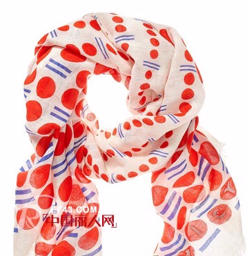 白色底色的围巾混了靓丽橙色波点,时尚又减龄。