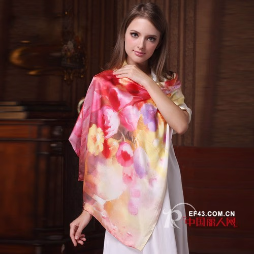 作为佩饰,丝巾具有极强的功能性,只要你在服饰搭配中善用丝巾,丝巾将会收到意想不到的效果。而繁忙的OL一族在抽屉里多备几款丝巾,遇上来不及准备的活动,巧妙的丝巾搭配能让你的着装风格瞬间变换,当然,灵感来源于你的大胆创新。色释艳丽图案前卫,手感柔软,是爱美女士不可缺少的点缀品。目前最时尚的是方巾,特别是真丝方巾可以任意搭配!换一件衣服不容易,但是换一条真丝巾,却能达到跟换衣服一样的效果哦!百变的围巾,让你天天都有新感觉!