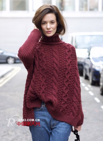 粗棒针枣红色高领毛衣似乎恰巧符合了本季的温暖主题,虽说是暗色系,但却别有一番韵味在其中。宽松的廓形搭配牛仔裤是最简单不会出错的搭配哦~