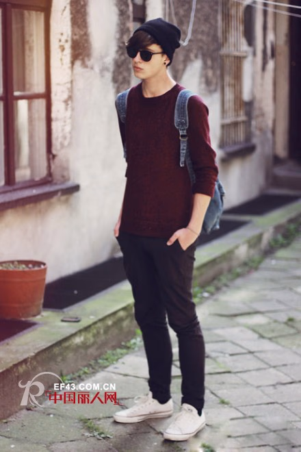 香醇的酒红色针织衫似乎有妈妈的毛衣的感觉。复古文艺的LOOK多亏了牛仔双肩包&针织帽的搭配。秋季凉风习习,快给你心爱的他送去最贴心的礼物吧~