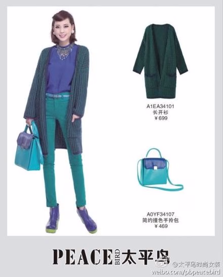 长款开衫比较适合设材高挑一点的MM,同色系绿色紧腿裤修饰身材,宽松有致的搭配总是这么美。