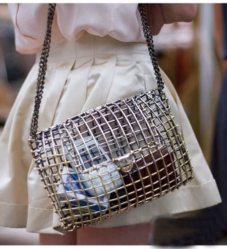编织系列固然经典,但像这样的“铁丝包”绝对让你够显眼,一身淑女装扮,搭配这样的一款包包很贴合今夏的流行主题,流行中有多了些个性。