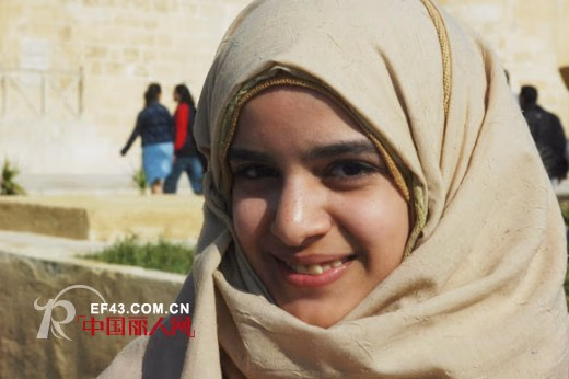 埃拉莎·穆罕默德戴着两层头巾,外面一层是绿色的,额头边沿处露出里面那层蓝色的。她说,包两层头巾是今年年轻学生的一种时尚包法。埃拉莎喜欢寻找新头巾式样,如果她不收看埃及的时尚频道,那她就会在地铁里或大街上关注其他穆斯林女性的头巾。