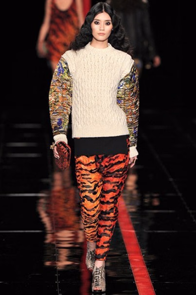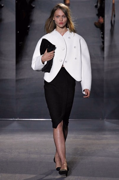 本次手法上更保守些,尽量做到不出格怪异,符合大众审美。Céline、Carven、Kenzo、Proenza Schouler等都对此兴趣正浓。Carven、Céline多款茧形大衣在原本空气感的基础上又将袖子做出同样膨胀的袖子,有的像茧,有的似烟管。Céline收腰上衣也将袖子做出膨胀感,Balenciaga、Diesel Black Gold、Antonio Berardi以及Just Cavalli等选择在上衣上进行创作,或硬挺的肩线,或放大的肩线直垂至手臂,但无论怎么处理,都给人自信满满,神采奕奕的舒适感。当然,不能不提Kenzo和Proenza Schouler潮范十足的设计。同样膨胀如圆球的短上衣外套搭配或俏皮或成熟的短裙,前者的目标全体比后者要小龄化些,剪裁上都是干净利落的麻利劲儿。