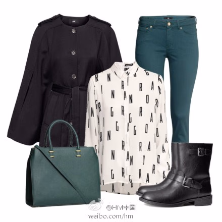 想让自己的造型看上去舒服养眼,最简单的方式就是遵守“全身色系不超过三种”的搭配准则。这身秋日Look结合黑白基本色和让眼睛放松的绿色系,清新之余又活力难挡,是上班下班两相宜的时髦造型。