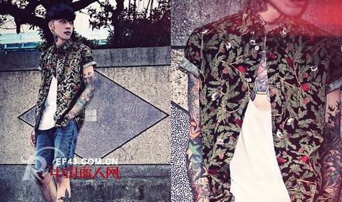 藤条蔓延处每一处都是生机,一点红色让深色衬衫提色了不少。短袖衬衫也可内搭白色T恤、穿出随性帅气感。与黑色牛仔短裤碰撞出一股不羁的张扬感。