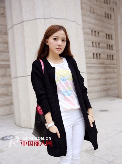 白色的印花打底衫搭配上白色的铅笔裤,很简约大方的搭配,清秀的颜色让MM们看起来很是清新脱俗!但是简单白色搭配起来又很是单调,黑色的针织开衫外搭,楚楚动人的秋装搭配。