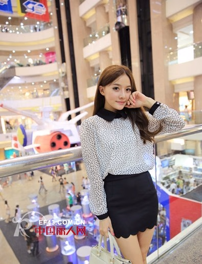 衬衫也是早秋时节不可少的呢,这款雪纺的衬衫,简约中不失时尚感呢,半透视装的设计就很性感呢,小印花的设计点亮整体造型,搭配上白色的包臀裙,气质十足。