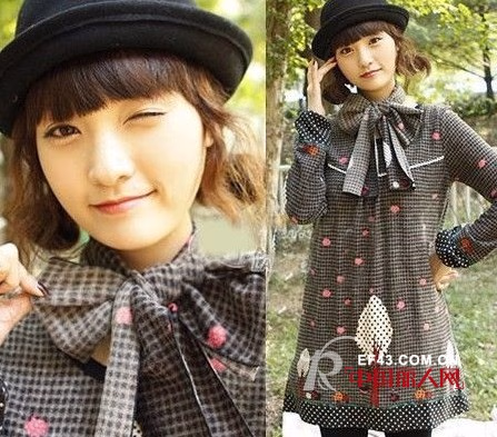 搭配tips:围巾可以选择与服装同风格花色的款式,想要让自己看上去更加卡哇伊,不妨打破成规,尝试一下可爱的蝴蝶结系法!