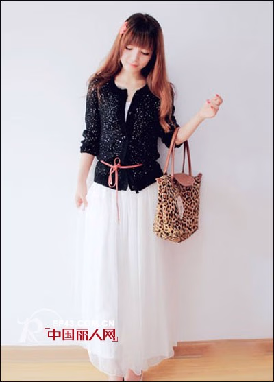 白色纺纱半身长裙,仙气十足。穿在身上尽显千金名媛气质。搭配黑白配色小外套,修身款式,系上腰带,勾勒完美身材,视觉显瘦显高,很有味道哦。