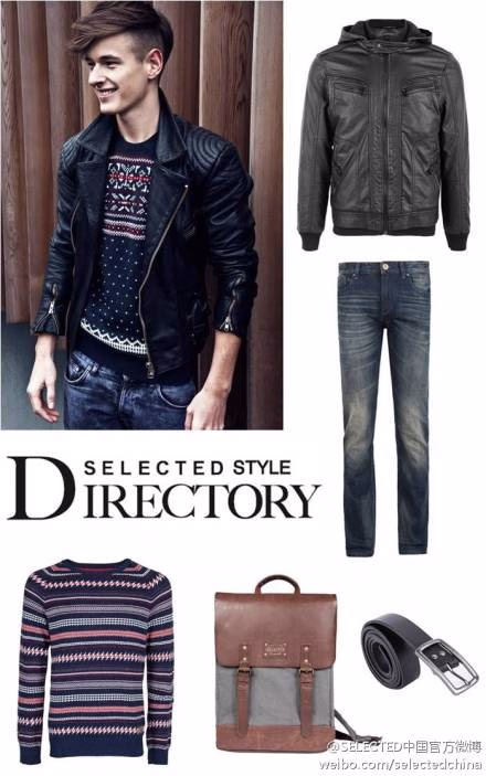 皮夹克是早秋必备的型格单品之一,通过与民族花纹针织衫和洗水牛仔裤的搭配,轻松营造锐意时尚的街头感。