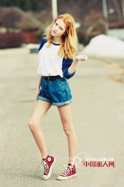 简单的色彩拼接却有展现着干净、校园的风格,搭配宽松卷边牛仔裤立刻使腿部曲线拉长,经典款帆布鞋成为潮人的必备单品。