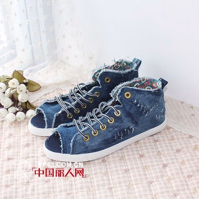 漏脚趾高帮帆布鞋是夏季打造清凉感的不错选择,从视觉上降低了温度,实属聪明,同时也非常实用哦。